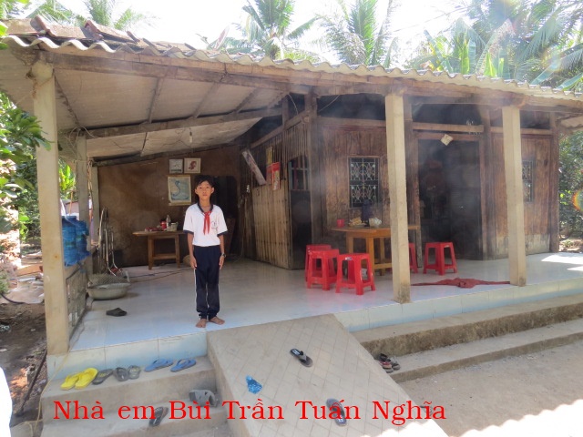 Bui Tran Tuan Nghia, 5th grade – Father, Bui Tuan Kiet, and wife have 2 children, residing in Thanh Xuan 2 hamlet, Thanh Tan village, Mo Cay Bac district, Ben Tre providence. His parents work whaever job is available.