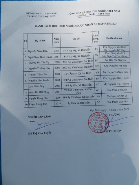 2023 - Phát Xe Đạp - Trường cấp 2 Đại Điền, huyện Thạnh Phú