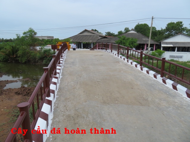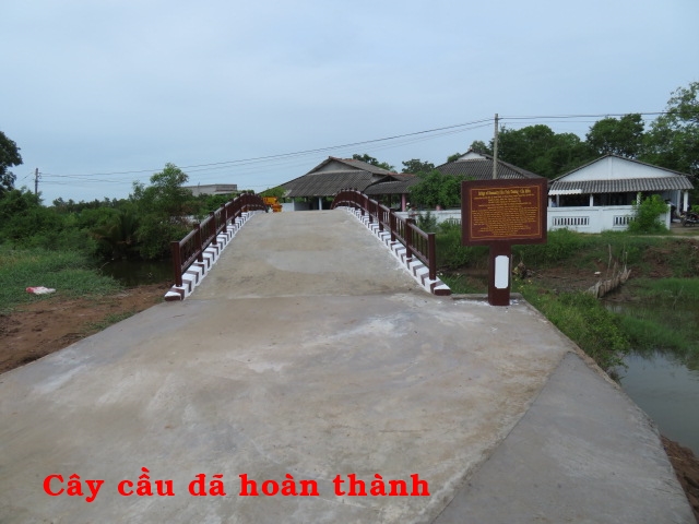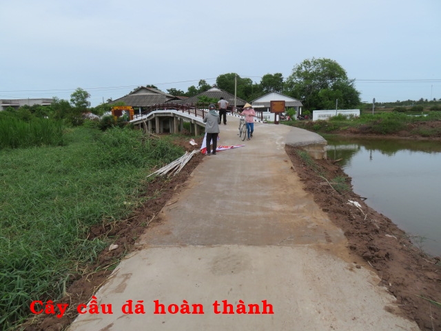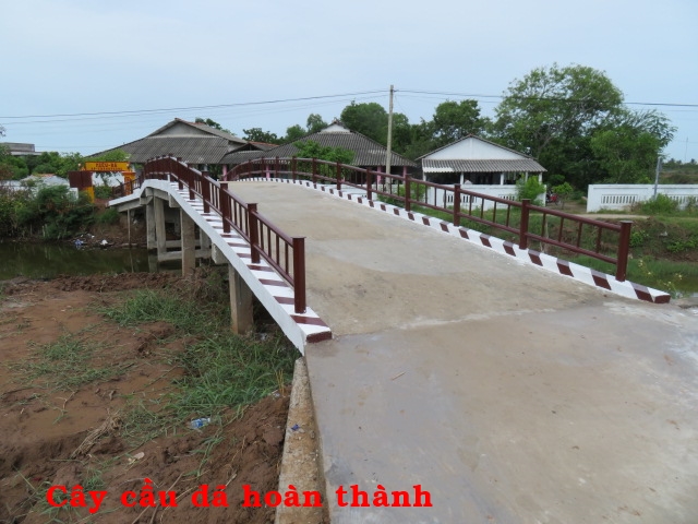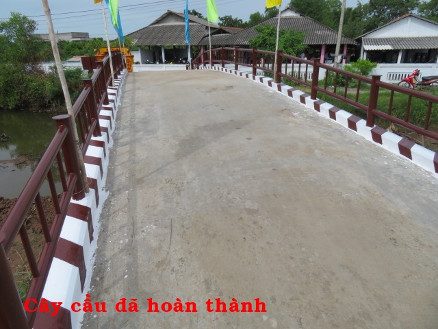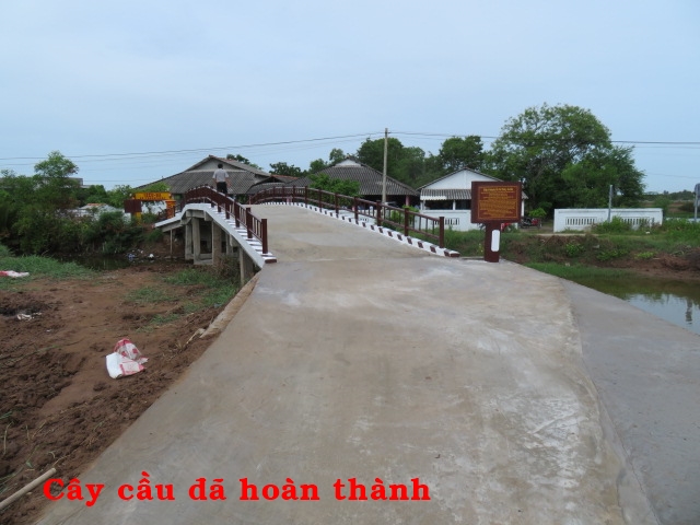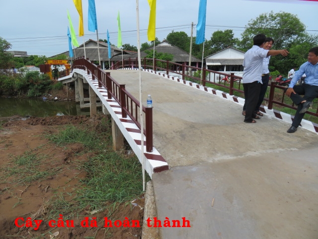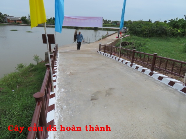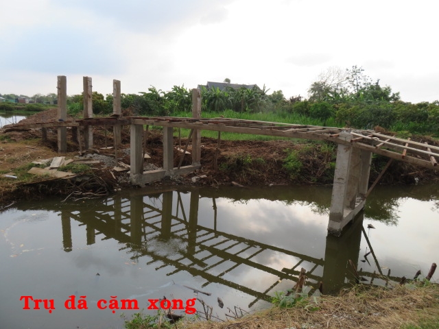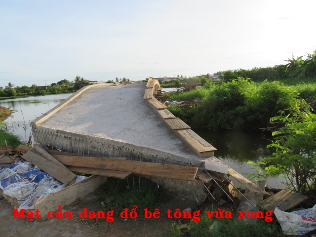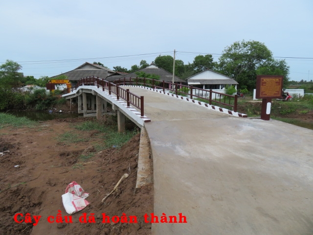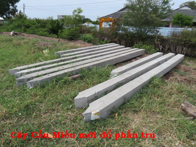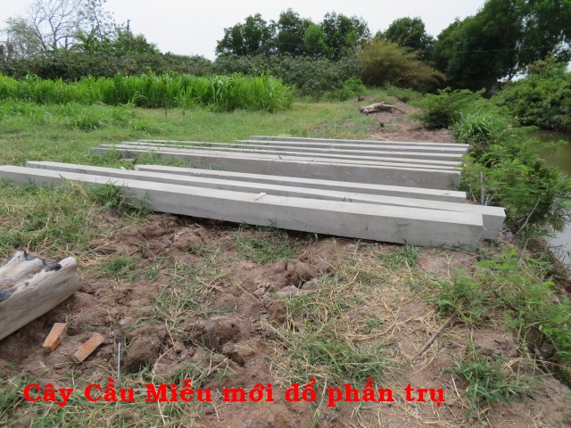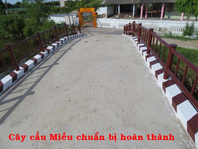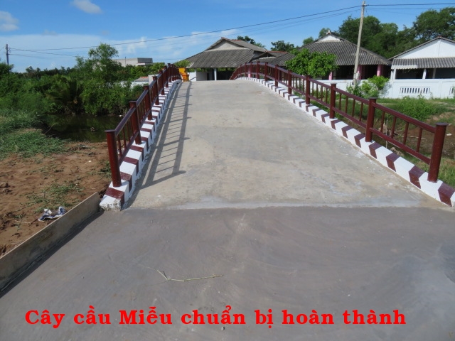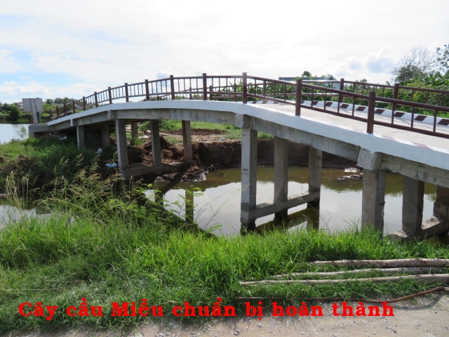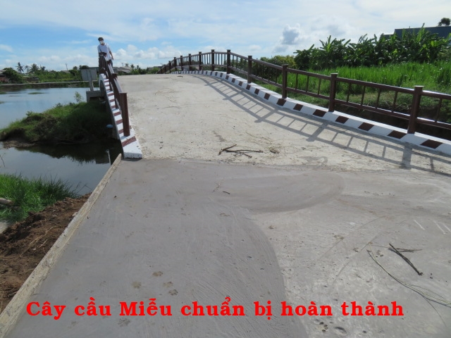 Chúng ta vừa xây xong 10 mét xi măng nối dài từ cây cầu Miễu tới thông lộ . Đến hôm nay thì coi như đã xong hết chỉ còn xây trụ bảng tên ân nhân nữa mà thôi. Dươ'i đây là cập nhật hình ảnh đang xây cầu Miễu:
