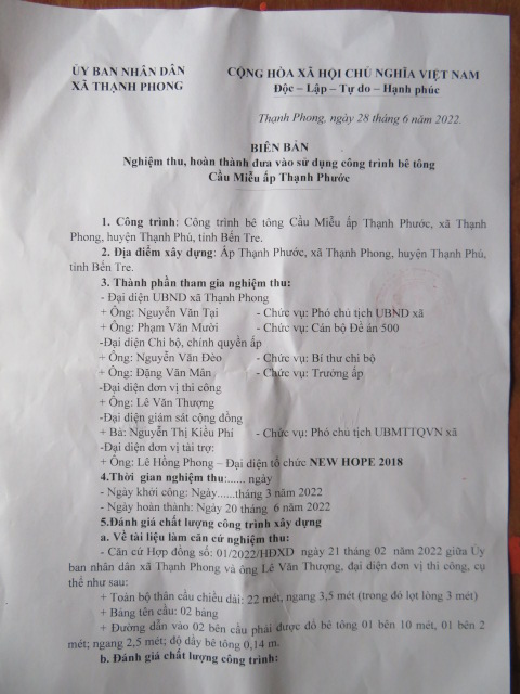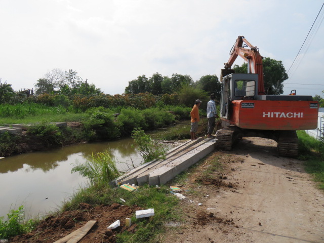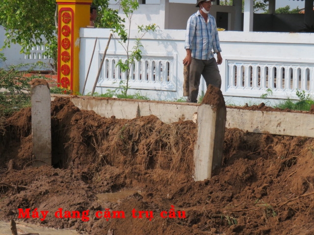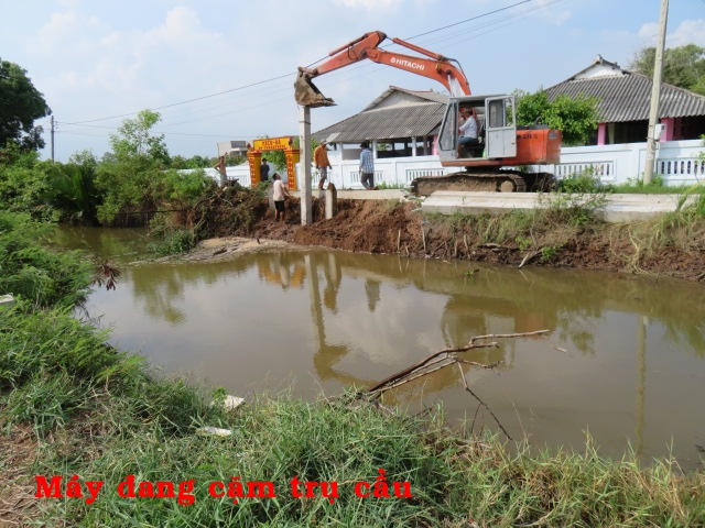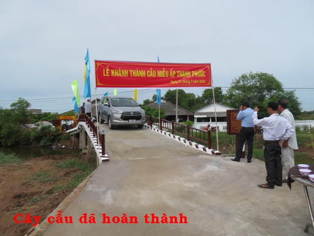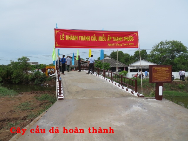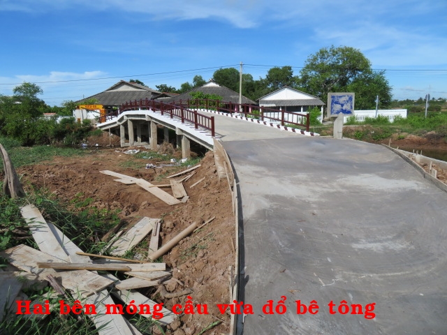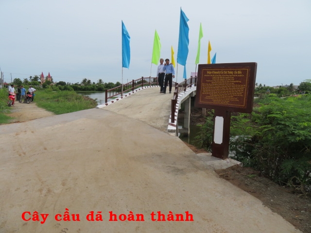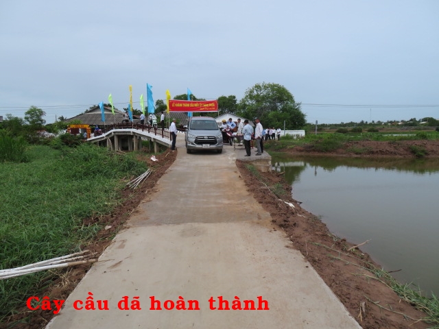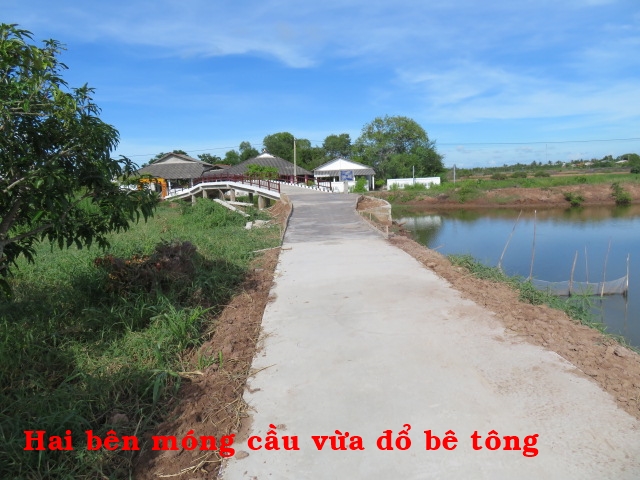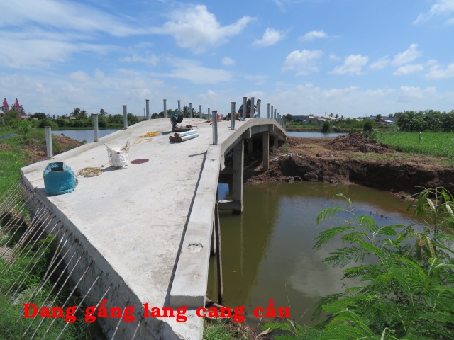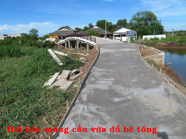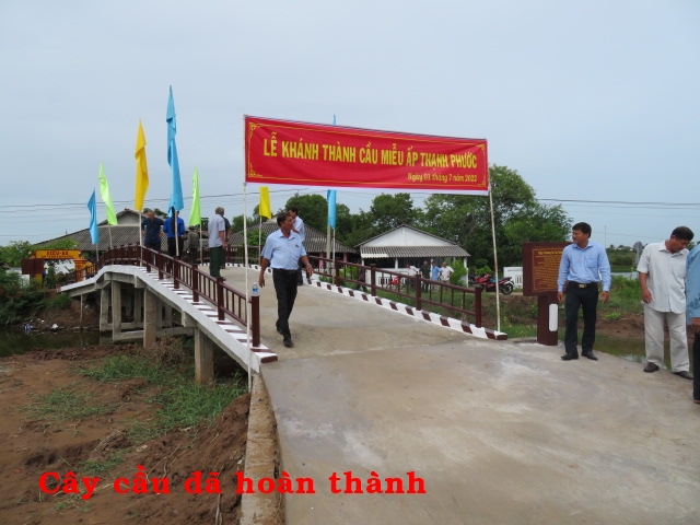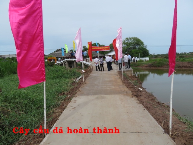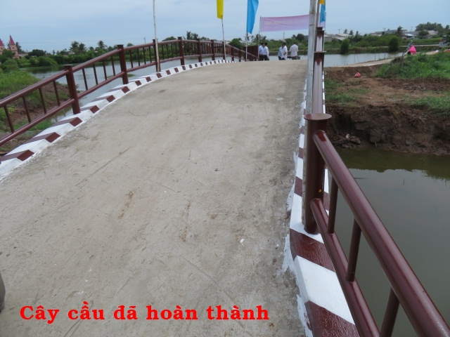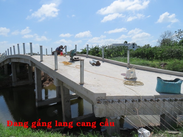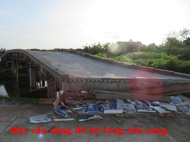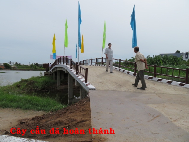 Chúng ta vừa xây xong 10 mét xi măng nối dài từ cây cầu Miễu tới thông lộ . Đến hôm nay thì coi như đã xong hết chỉ còn xây trụ bảng tên ân nhân nữa mà thôi. Dươ'i đây là cập nhật hình ảnh đang xây cầu Miễu: