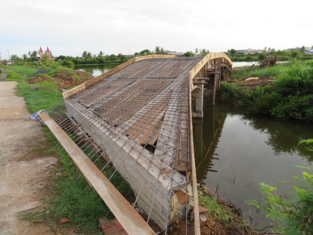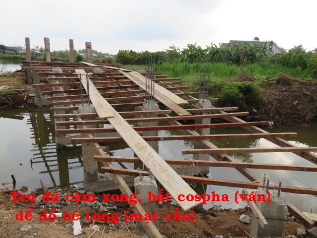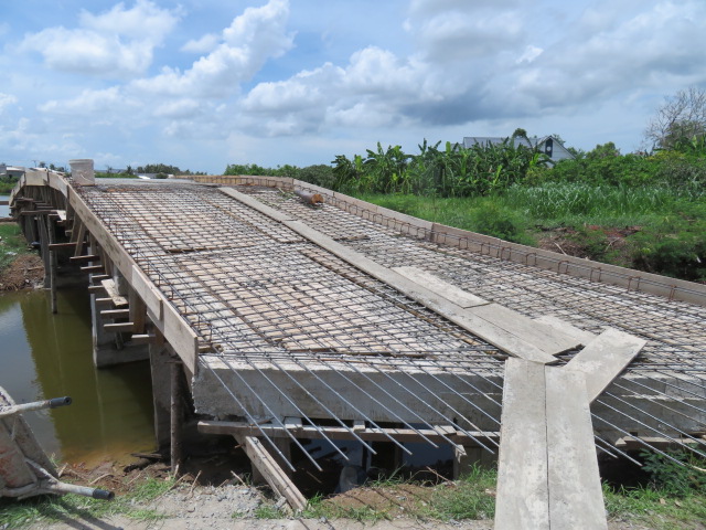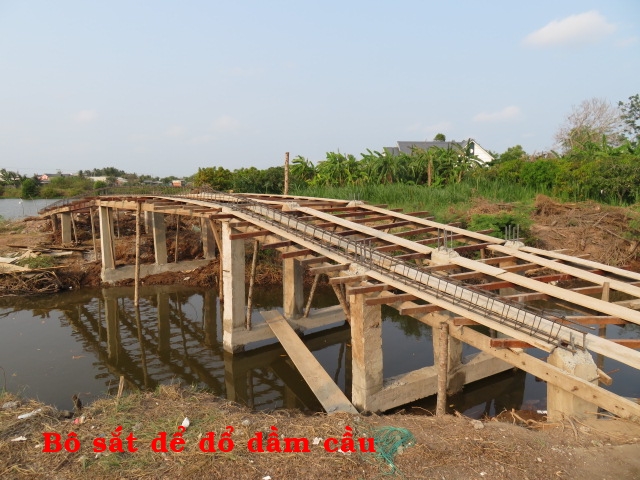We are halfway done with Cau Miễu. Today we are done embedding the steels and ready to pour the concrete making the deck's surface. Below are the pictures of the work. Estimated completion date is mid-June.