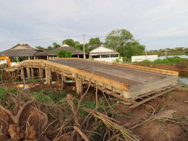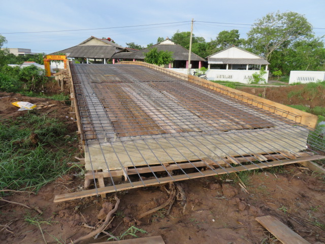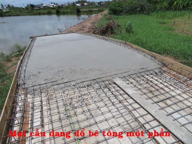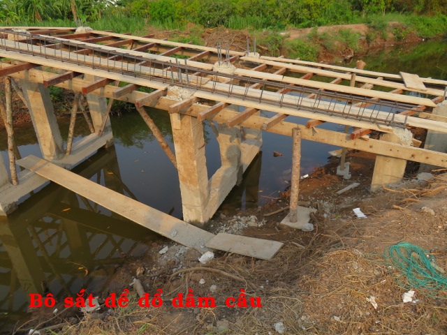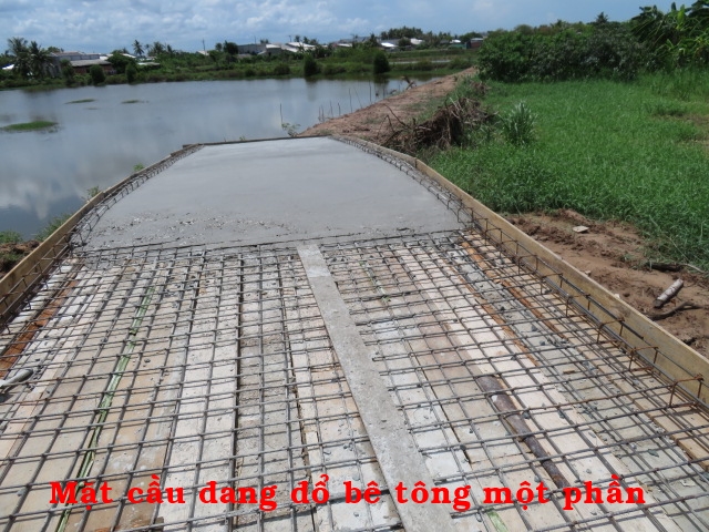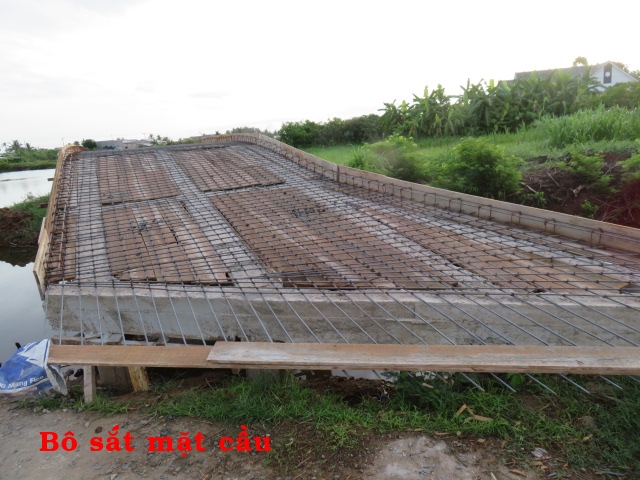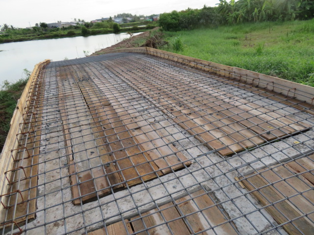 Dưới đây là hình ảnh của lòng cầu đang được xây. Hôm nay chúng ta đã làm xong cốt sắt và đang đổ xi măng cho lòng cầu. Chúng ta đã xong nữa đoạn đường và cầu sẽ được hoàn tất vào khoảng giữa tháng 6.