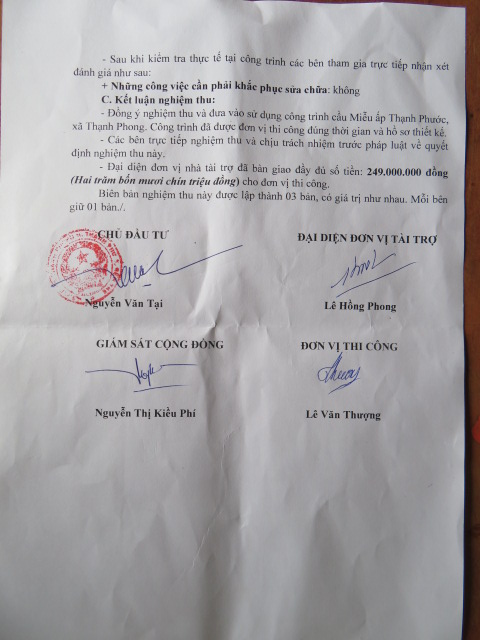 Xin chân thành cảm ơn các vị ân nhân sau đây đã giúp xây  lại cầu Miễu này: