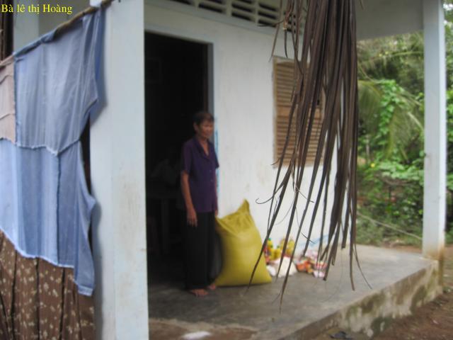 Mrs, Le Thi Hoang, 64 years old, residing at hamlet 6, An Nhon village, Thanh Phu. She has a daughter who lives too far away. She lives in house of humanity and works as a day laborer.