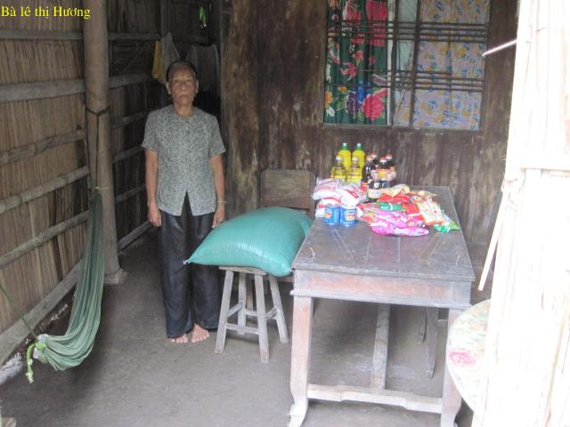 Ms. Le Thi Huong, 73 years old, residing at Kinh Ngoai hamlet, Binh Hoa village, Giong Tron. She has no children and works as day laborer.