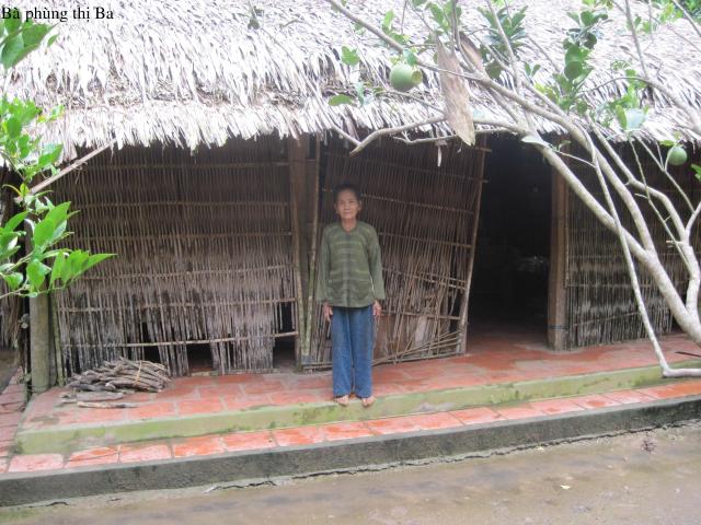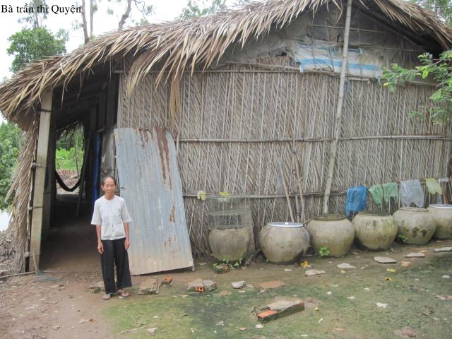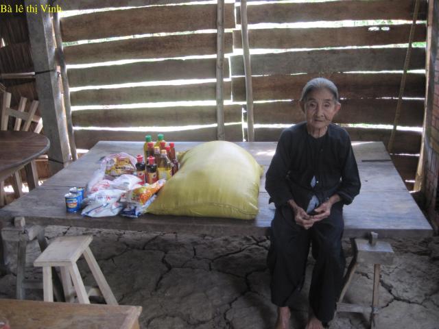 10. Bà Lê thị Vinh 84t, ở ấp Giồng lớn, xã Nhuận Phú Tân, H. Mõ Cày Bắc, sống một mình, không con cháu, xung quanh nhà có vài gốc dừa bán để kiếm sống, cuộc sống rất thiếu thốn.