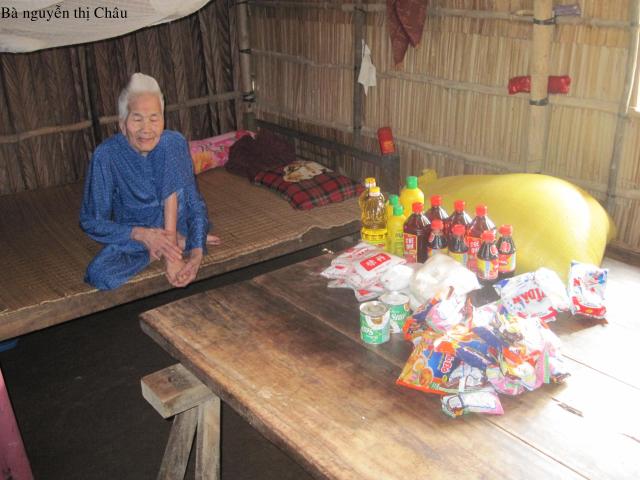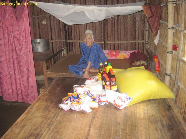 02. Bà Nguyễn Thị Châu 87 tuổi, ở ấp An Định , xã An Nhơn. Không con, đang ở đậu nhà cháu, cháu cũng nghèo.