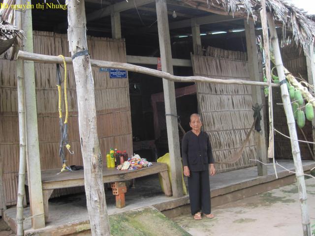 Mrs. Nguyen Thi Tham, 72 years old, residing at Tan Thuan hamlet, Nhuan Phu Tan village, Mo Cay Bac. She lives alone; her child lives very far away and is also very poor.