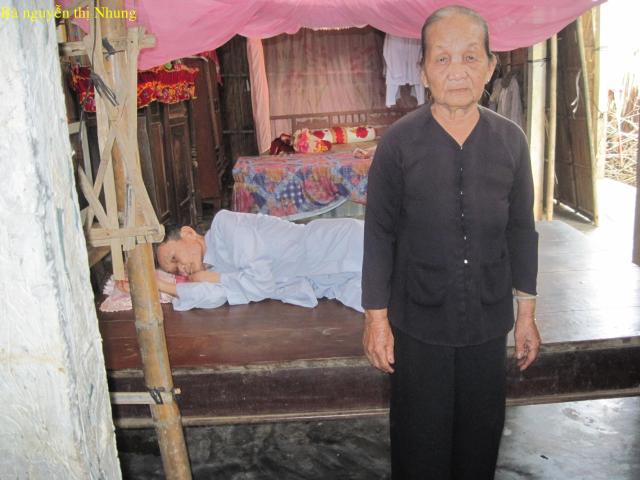 01. Bà Nguyễn Thị Nhung 75 tuổi ở ấp 6 xã An Nhơn, huyện Thạnh Phú. Có con ở xa những rất nghèo, hàng ngày chẻ cuổi để bán và nhờ cháu ở chòm xóm, chồng bị liệt nằm 1 chổ.