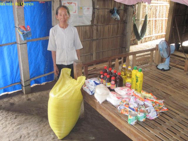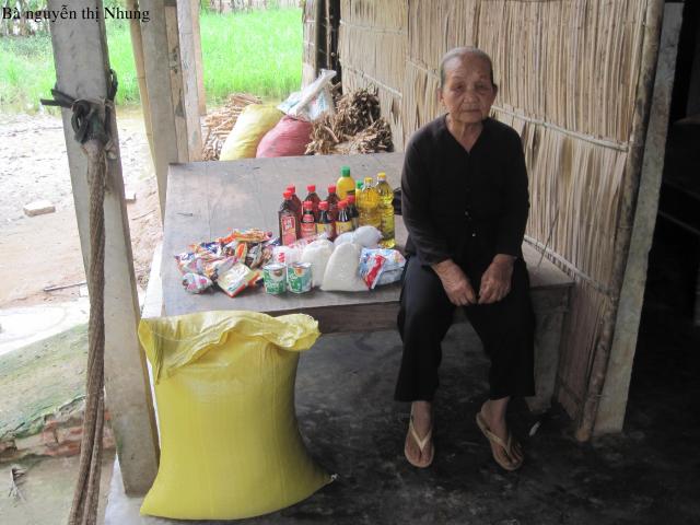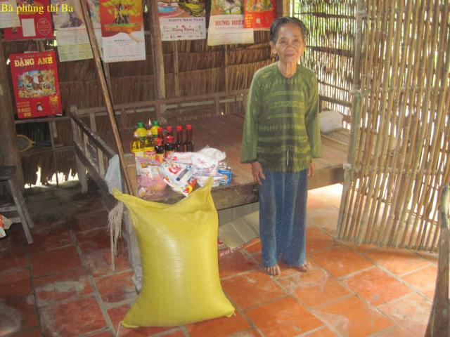 09. Bà Phùng Thị Ba 78t, ở ấp Bến Xoài, xã Nhuận Phú Tân, H.Mõ Cày Bắc; sống một mình, hàng ngày nhờ cháu ở xóm cho gạo ăn.