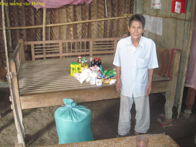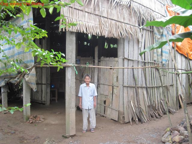 Mr. Truong Van Hung, 73 years old, residing at hamlet 3, Binh Hoa village, Giong Trom. He has heart condition rendering him unable for activity; his wife sells lottery tickets; they are homeless.