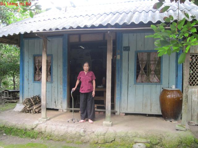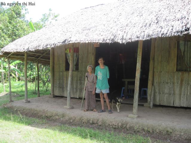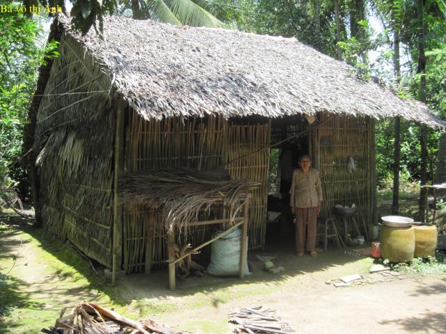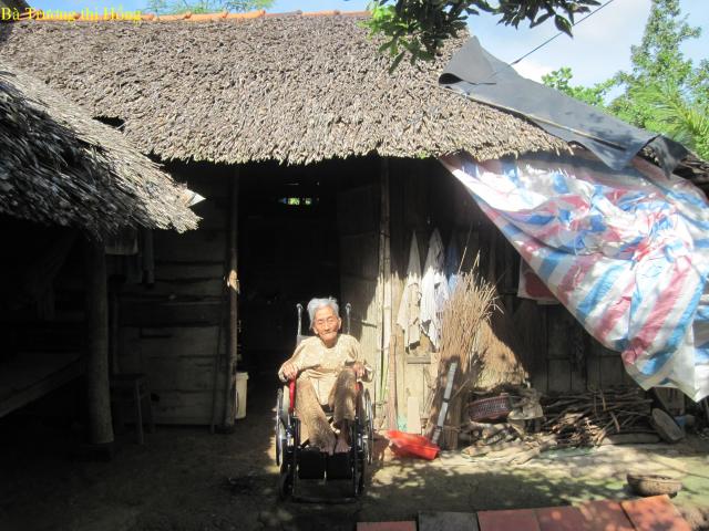 Ở cùng người cháu và con hằng ngày đi làm thuê kiếm tiền về nuôi bà. Nhà ở đậu mái hiên của người chòm xóm.