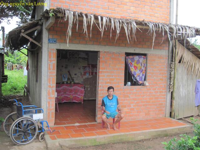 Bị liệt 2 chân và 1 tay, không con, vợ đi bán vé sô; ở nhà tình thương mới cất.