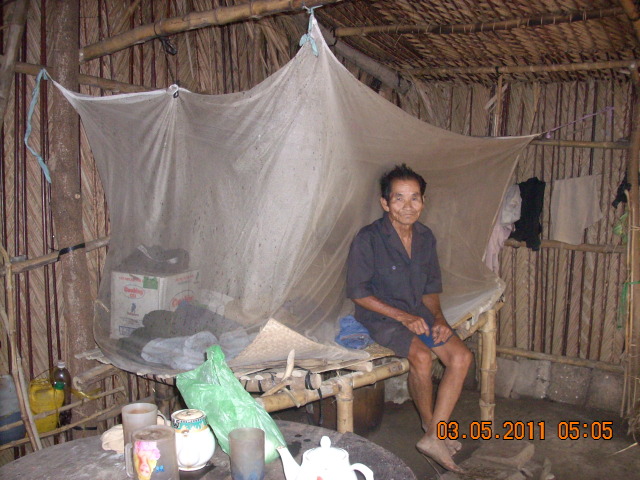 55. Mr. Huynh Van Quan, age 80, is residing at hamlet 4, An Phu Tay, Ba Tri, Ben Tre Province. His 2 children are working away from home and can barely feed themselves, let alone helping him. He lives at the mercy of his neighbors, eating whatever is given to him or sometimes going starving if no one has something to spare for him. He is not able to move around due to rheumatism.