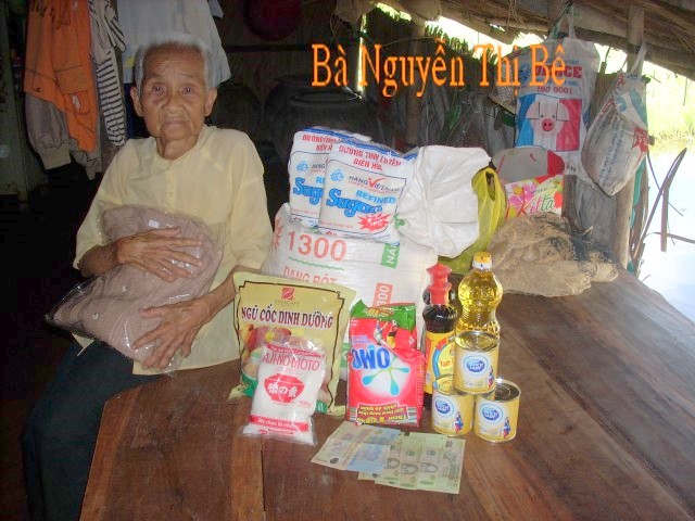 Bà Trần Thị Kiêm, 86 tuổi, số nhà 102/2 Thạnh Quí B, xã Bình Thạnh, huyện Thạnh Phú, Tỉnh Bến Tre. Bà sống một mình trong một căn nhà mà vách lá đã rách nát, hàng ngày bà sống bằng sự giúp đỡ của hai cháu đi làm công ở Sài Gòn để sống qua ngày (cho gì ăn nấy ).