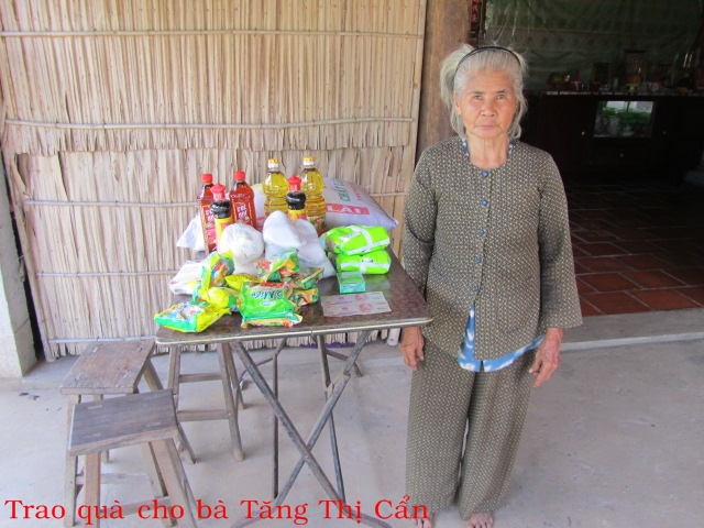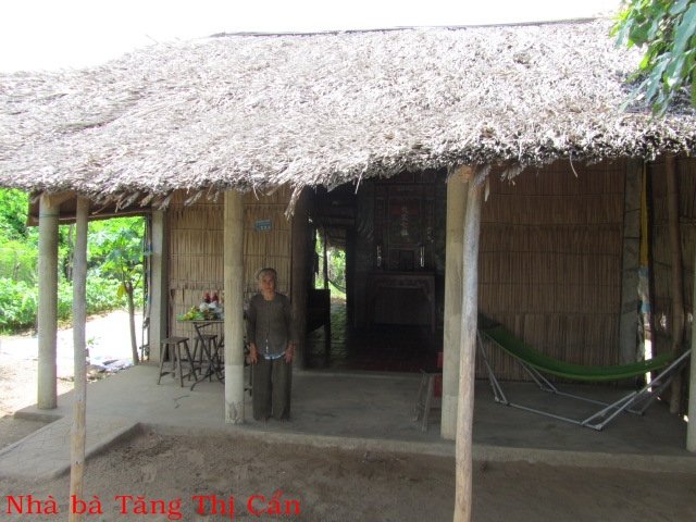 Bà Tăng Thị Cẩn 65t ở Khâu Băng xã Thạnh Phong huyện Thạnh Phú. Bà không chồng con, đang ở đậu nhà người chị, người chị cũng sống một mình. Bà đi nhổ cỏ thuê vừa mới về, thu nhập khoãng 2 đô một ngày nhưng không ổn định.