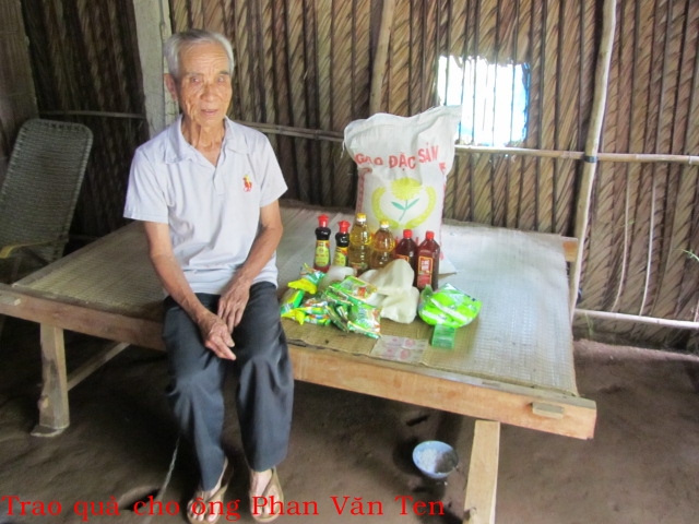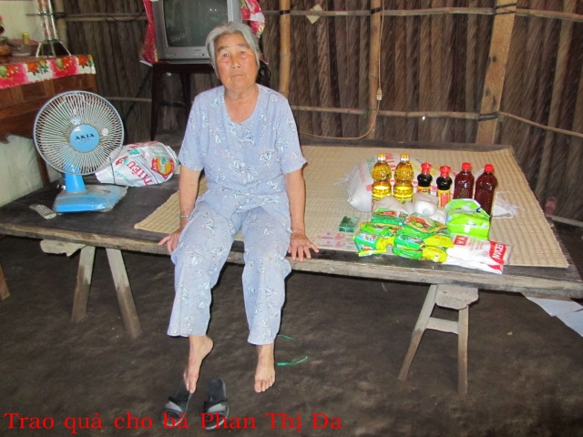 Bà Phan Thị Đa 81t ở Khâu Băng xã Thạnh Phong huyện Thạnh Phú, không ruộng đất, sống một mình, hàng ngày nhờ cháu ở gần và các nhà hảo tâm cho gạo để sống.
