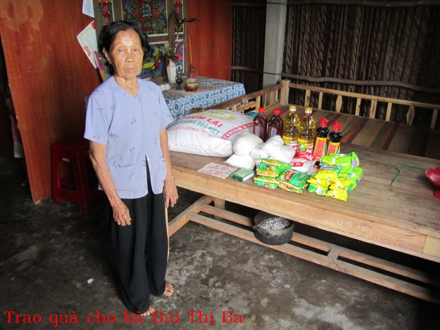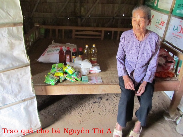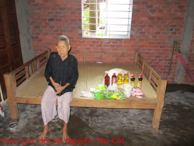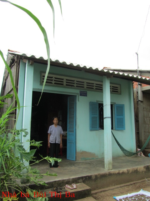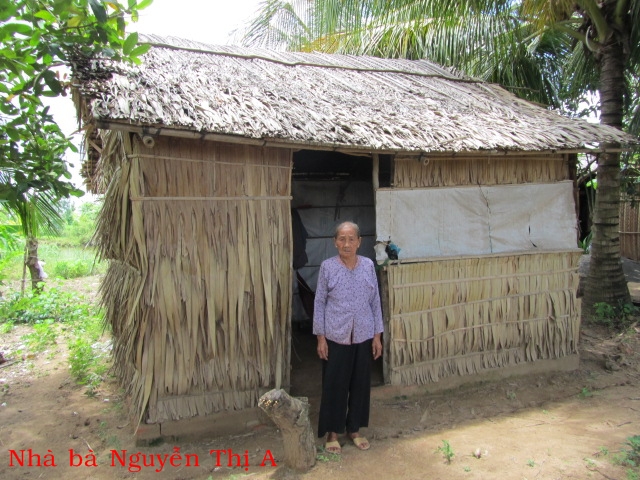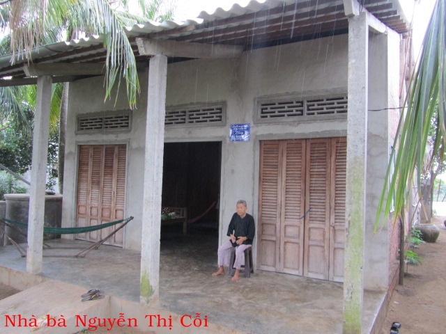 Bà Nguyễn Thị Cỗi 86t ở Lò Vôi Cồn Điệp. Con chết, bà ở chung với cháu, hàng ngày, người cháu đi làm thuê về nuôi bà. Căn nhà vừa được chính phủ cho.