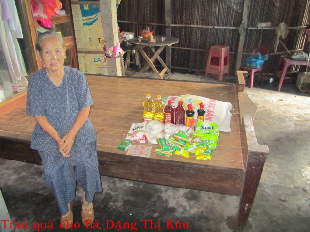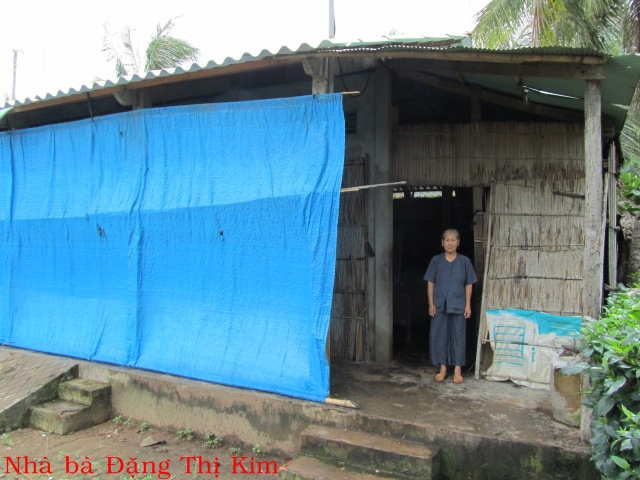 Bà Đặng Thị Kim 80t ở Cồn Chim xã Thạnh Phong huyện Thạnh Phú. Có con đã bị chết, bà sống cùng với 3 đứa cháu gái, 3 cháu gái có gia đình và đã ở riêng. Lúc trước còn khỏe, bà gánh kim, chỉ đi bán. Hiện tại, các cháu cho gạo để sống.