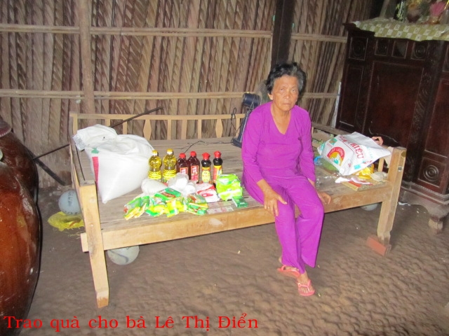 Bà Lê Thị Điển 68t ở Bồn Bồn xã Thạnh Phong huyện Thạnh Phú. Bà có con nhưng đã theo chồng, hiện tại bà sống với đứa cháu ngoại còn nhỏ đang đi học. Hàng ngày bà đi lượm ve chai về bán để kiếm sống.