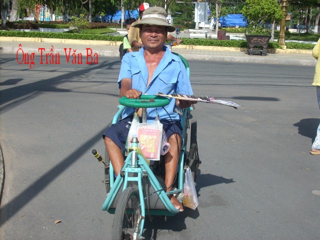 78. Mr Ba van Tran, born in 1955, address: 82/20, 3, district 1, Ben Tre province. He has polio since 3 years old, makes his living by selling lottery tickets on his wheelchair, he makes about 30,000 dong per day ( roughly 1.50 dollars ).