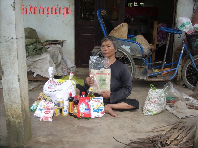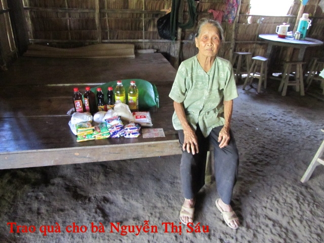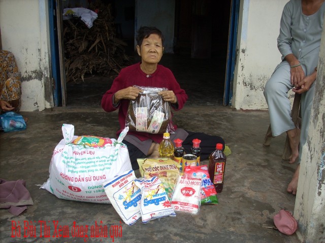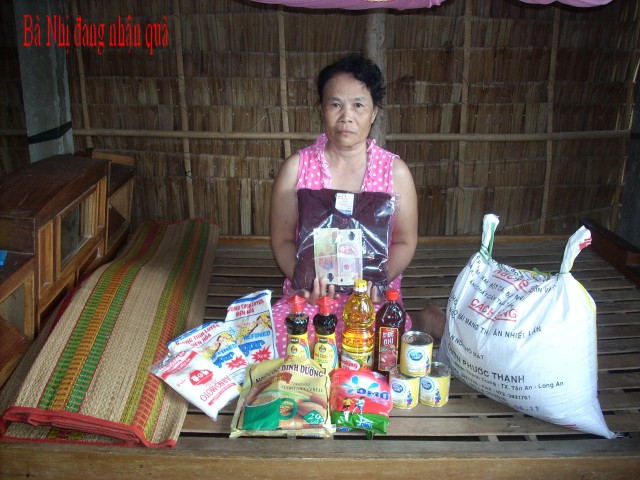 Bà Bùi Thị Xem, 63 tuổi, số nhà 39/8, ấp 6, xã Mỹ Hưng. Bà không còn khả năng lao động. Bà sống chủ yếu vào tiền trợ cấp hộ nghèo của nhà nước mỗi tháng được 180.000 đồng. Bà rất vui khi nhận được quà của Hội Newhope.