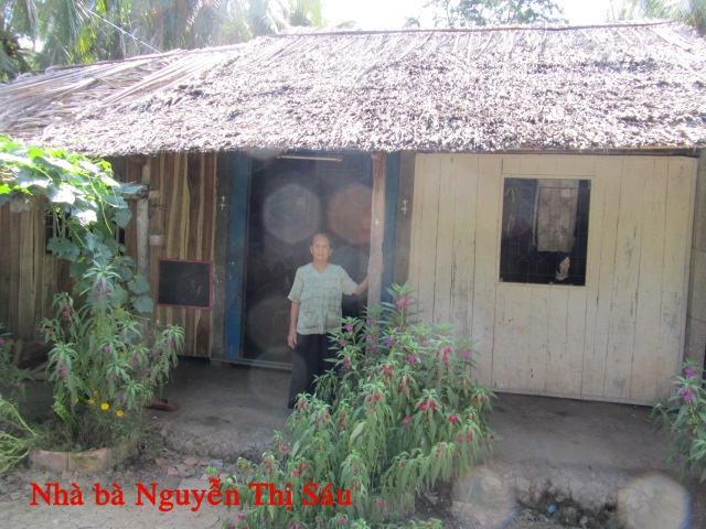 73. Mrs Sau thi Nguyen, 87 yeard old, address: hamlet Phu , Tan Phong, Thanh Phu. She has 10 coconut trees of which she sells the harvest , her daily meals are done by the help of relatives