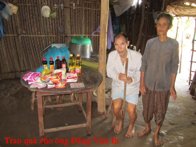 Ông Đặng Văn In 65t ỏ Bồn Bồ xã Thạnh Phong huyện Thanh Phú. Ông bị bệnh nay hơn 10 năm không làm gì nỗi. ông bà sống với người con trai nay 37t chưa vợ. hàng ngày đi làm phụ hồ về nuôi ông bà.