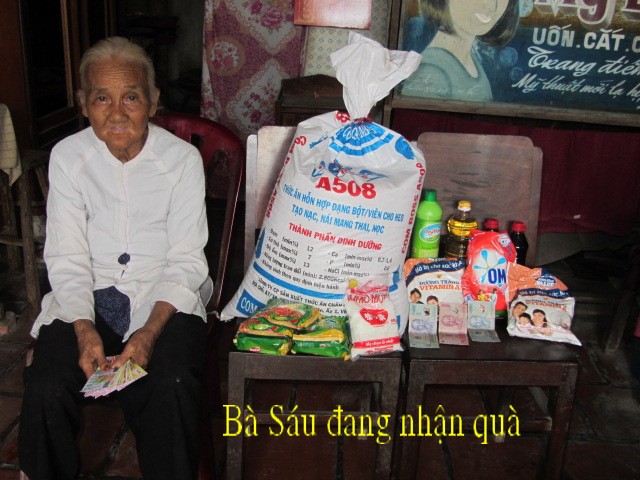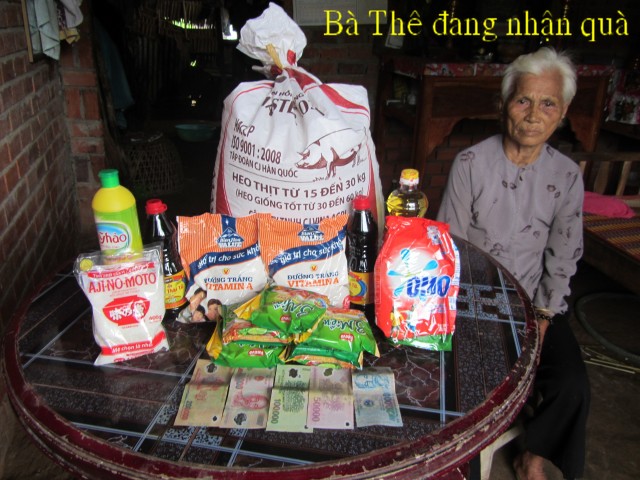 12. Nguyen thi The, 81 yrs old, she is raising her orphan grandchild who is in 7th grade with a meager earning of 80,000 dong($4 US) per day by doing whatever job that people hire, they also rely greatly on the help of kind neighbors and relatives for foods. Their address is 115/2 sup-hamlet Thanh Qui B, Binh Thanh, Thanh Phu