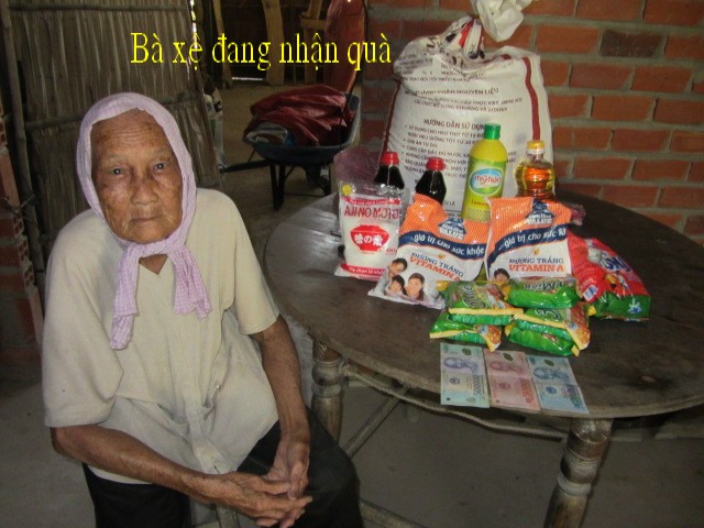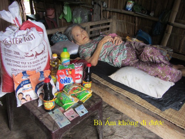 14. Mrs Pham thi Sau, 76 yrs old, she is widowed and handicap, she makes about 70,000 dong ($3.50 US) per day selling lottery tickets on the bus. She lives by herself ,her children are too poor to help, she often got sick and had no one to rely on, her living condition is very sad. Her address is 69/3 sup-hamlet 4, Minh Duc, Mo Cay Nam.