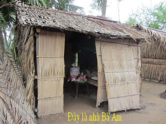 Bà Nguyễn Thị Ấm, 78 tuổi bà đang sống với người con giá không nghề nghiệp. Bà cất tạm nhà trên đất người hàng xóm. Bà bị bệnh xa xương chậu do bị té lúc tuổi già. Hiện tại bà chỉ nằm trên giường không đi lại được mọi sinh hoạt con gái bà lo.