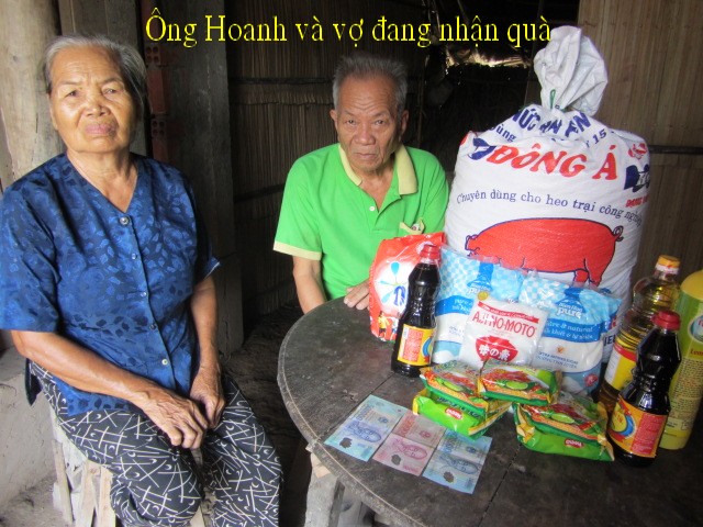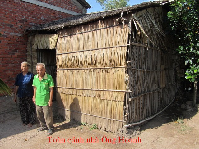 Ông Lê văn Hoanh,72 tuổi vợ bà Trần Thị Đời 71 tuổi. Ông bà có hai con trai đều bị chết. Ông được người hàng xóm thương tình cho được miếng đất để cất nhà nên nhà không có số. Hàng ngày ông đi cắt lác phơi khô để bà đánh dây (se lác) để bán kiếm sống. Mỗi ngày được 60.000 đồng (3 đô). Ông bị bệnh cao huyết áp thì không đủ tiền thang thuốc. Cuộc sống của vợ chồng ông rất khó khăn.