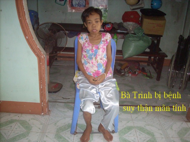 - Mrs. Nguyen Thi Ngoc Trinh, age 31, is residing at 295/1B, Alley1, District4, Ben Tre city. She got chronic Kidney failure, a broken leg, heart failure and severe pneumonia. Due to her illness, her mother had to sell the house in order to find treatment for her. Her living time is counting.