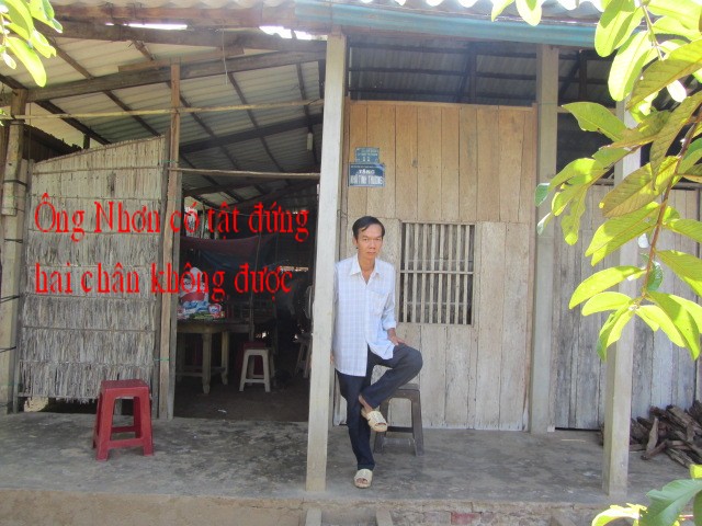 - Mr. Tran Van Nhon, age 52, is residing at 11/7 Thanh Tri Thuong Hamlet, My Hung Village. He is living by himself, having muscular dystrophy in early age. He now lives at the mercy of neighbors for food and help from charity organizations. His house is given by the Government.