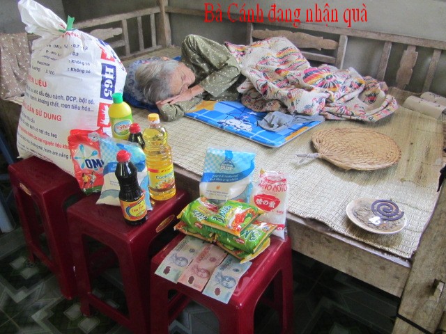 Bà Nguyễn Thị Cánh, 81 tuổi. Bà bị bệnh gãy cả 2 chân nên không thể cử động được. Do bà lớn tuổi và con bà đều nghèo nên không chữa được cho bà kết quả là chân bà bị hoại tử. Bà nhận được món quà của Hội bà rất mừng nhưng bà chỉ sống được tính bằng ngày thôi.