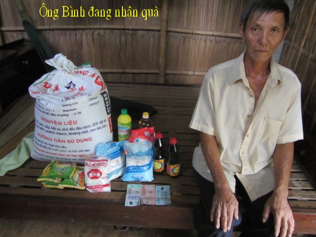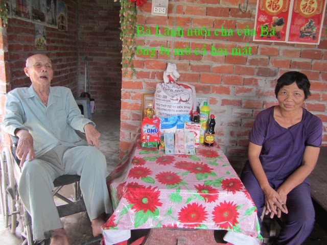 27. Mrs. Nguyen Thi Lanh, age 61, is residing at 450/1 Thanh Qui A, Binh Thanh Village. She has no skill to work. The family income depends on the ducks she raises and this year, the price for poultry is going down sharply. On top of that she is nursing her blind father, age 91 and says she can hardly feed the family in this situation.