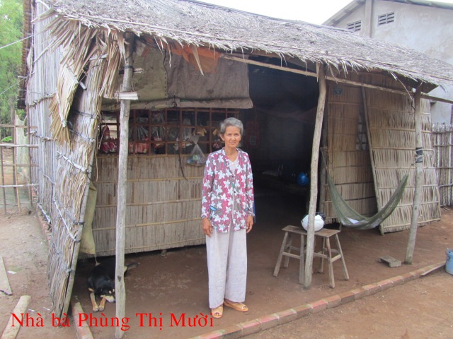 Bà Nguyễn Thị Liễu 84 tuổi ở Bến Vinh bà có một người con đi làm thuê ở Long Khánh lâu lâu mới về mỗi tháng người con gởi về cho bà 200 ngàn đồng (10đô) để bà mua gạo ăn.