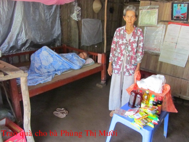 43. Ms Phung Thi Muoi 89-year-old, lives in Ben Vinh Thanh Phu Vinh An Thanh district, she lives with her now unmarried 60-year-old daughter, she was sick lying in bed, they relies on the sale of a small food store for the living.