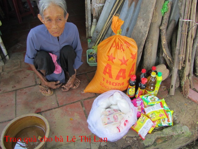 47. Ms Le Thi Lan, 84-year-old, lives in hamlet 7 Thanh Phu, she lives alone and relies on others for donation of rice.
