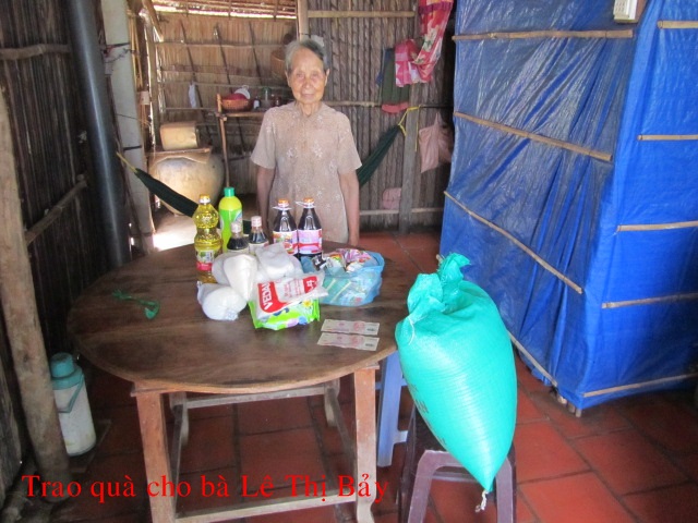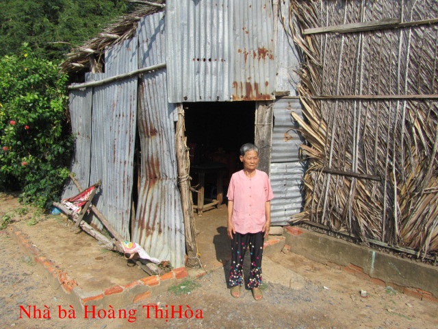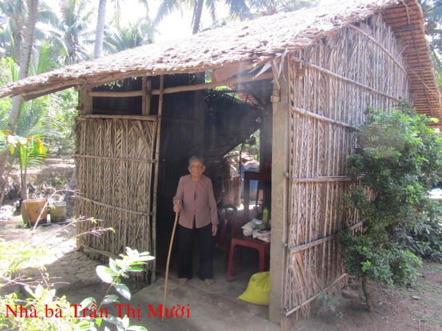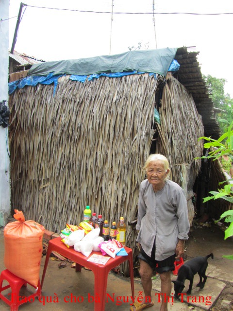 53. Ms Nguyen Thi Trang, 86 year old, lives at hamlet 7, Thanh Phu Thanh Phu district. She has children but they are poor and live separately, she lives alone in the house less than 8 square meters. Everyday, she begs at the market Giong Mieu for food.