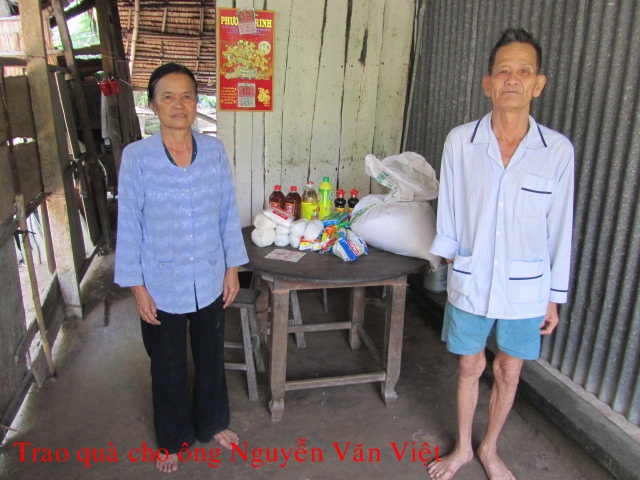 Ông Nguyễn Văn Việt: ở Mỹ Thạnh, xã Long Mỹ, Huyện Giồng Trôm hằng ngày người vợ đi làm thuê về mua gạo , ông Việt bị liệt nhẹ môt bên không lao động được.