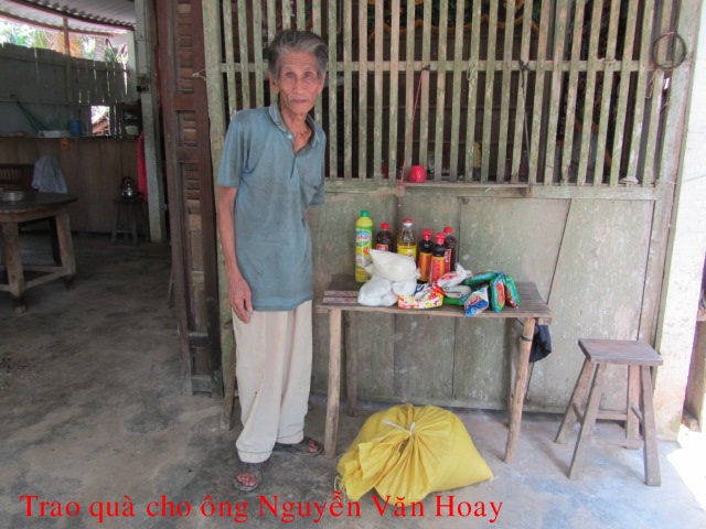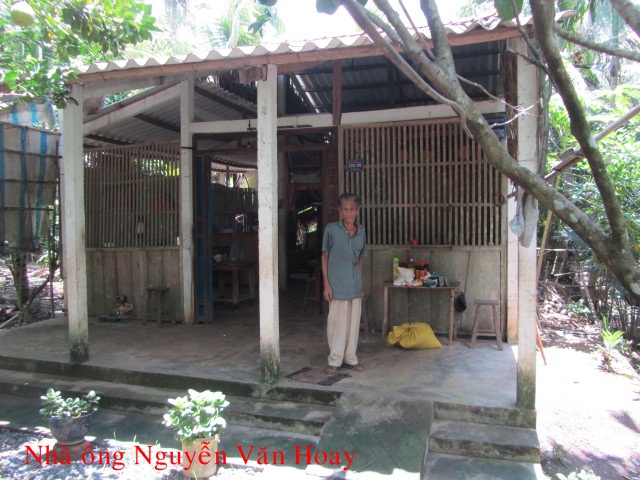 64. Mr Nguyen Van Hoay, 79-year-old lives in Linh Lan, Long My hamlet, Giong Trom District. He has children but they work as a laborer in Long Khanh. Mr Nguyen is at home alone, he owns more than 10 grapefruit tree, and 15 coconut trees, and relies on selling the fruits for a living.