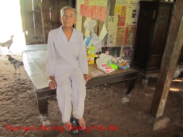 66. Mr Truong Van Ba, 83 year old, lives in Khau Bang, Thanh Phong hamlet, Thanh Phu province; he lives on his own, and relies on selling chicken for a living.