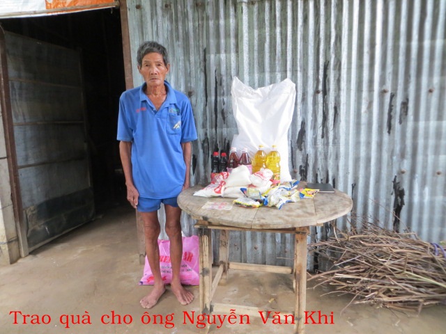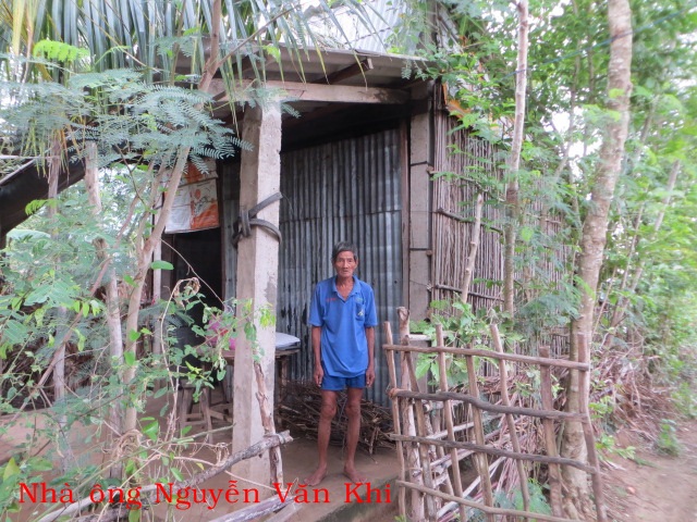 Ông Nguyễn Văn Khi 74t ở ấp An Huề xã An Qui huyện Thạnh Phú tỉnh Bến Tre. Không vợ con, lúc còn sức khỏe ông đi gánh đất mướn, hiện tại sức yếu nên ông làm những công việc theo sức của mình.