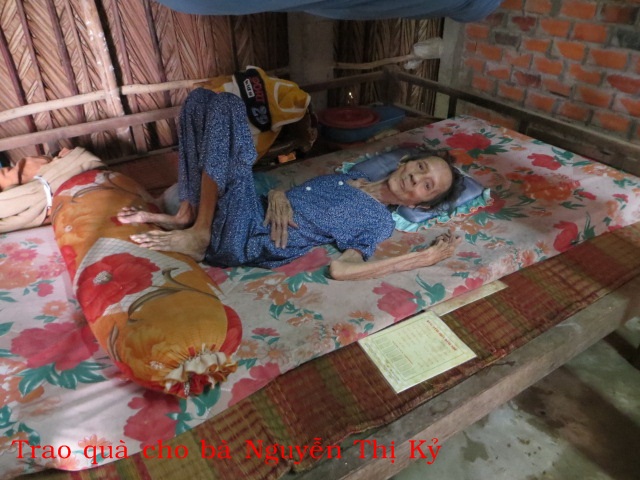 3. Mrs. Ky Thi Nguyen: 73 years old of An Thuy sub-hamlet, An Qui hamlet, Thanh Phu district, Ben Tre Province. She has been bed-ridden due to paralysis for 4 years. Her daughter does odd jobs to support her.