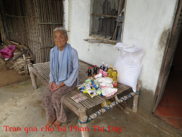 7. Mrs. Day Thi Phan: 84 years old of An Binh sub-hamlet, An Qui hamlet, Thanh Phu district, Ben Tre Province. Unable to work, she lives off the donations of benefactors and her neighbors.