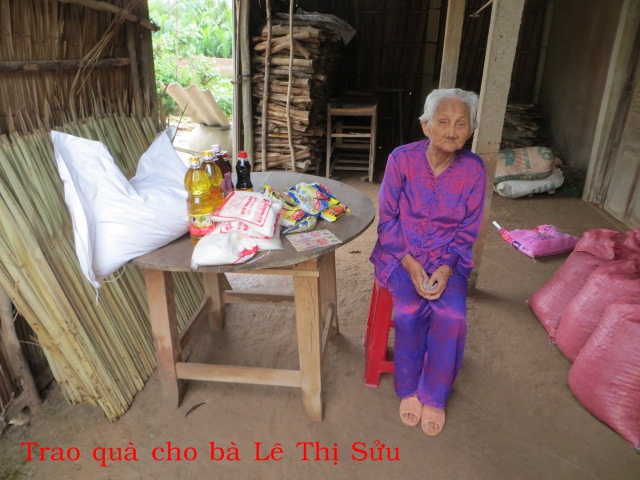 8. Mrs. Suu Thi Le: 99 years old of An Binh sub-hamlet, An Qui hamlet, Thanh Phu district, Ben Tre Province. Children were all dead. She is living with her niece/nephew who supports her daily .