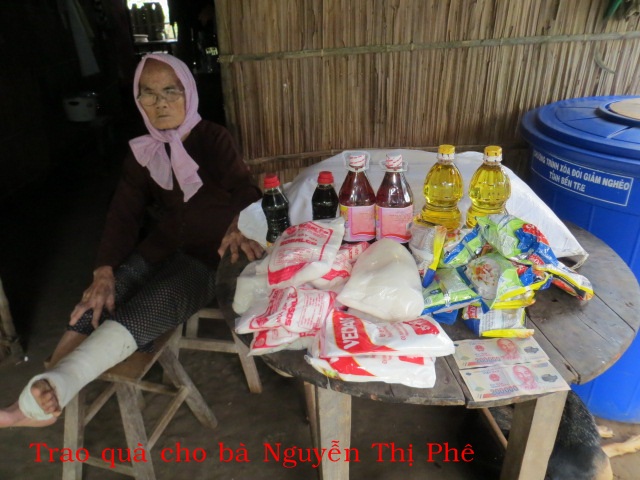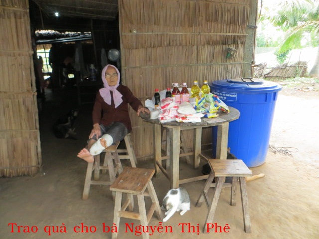 9. Mrs. Phe Thi Nguyen: 84 years old of An Binh sub-hamlet, An Qui hamlet, Thanh Phu district, Ben Tre Province. No children. Suffering from a broken leg, she is living with her niece/nephew who took her in.