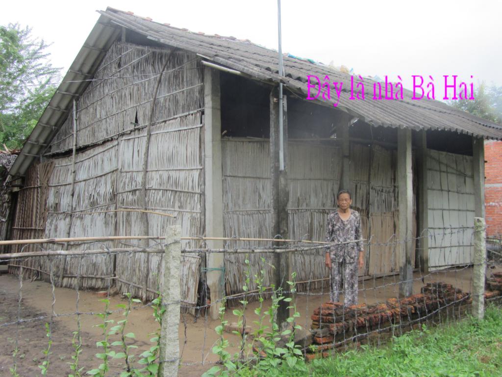 Bà Nguyễn Thị Hai, 87 tuổi. Số nhà 479/1, ấp Thạnh Quí A, xã Bình Thạnh, huyện Thạnh Phú. Bà sống không ruộng đất con cháu bà đi làm mướn kiếm sống ở xa nên bà ở nhà một mình nên sống khó khăn.