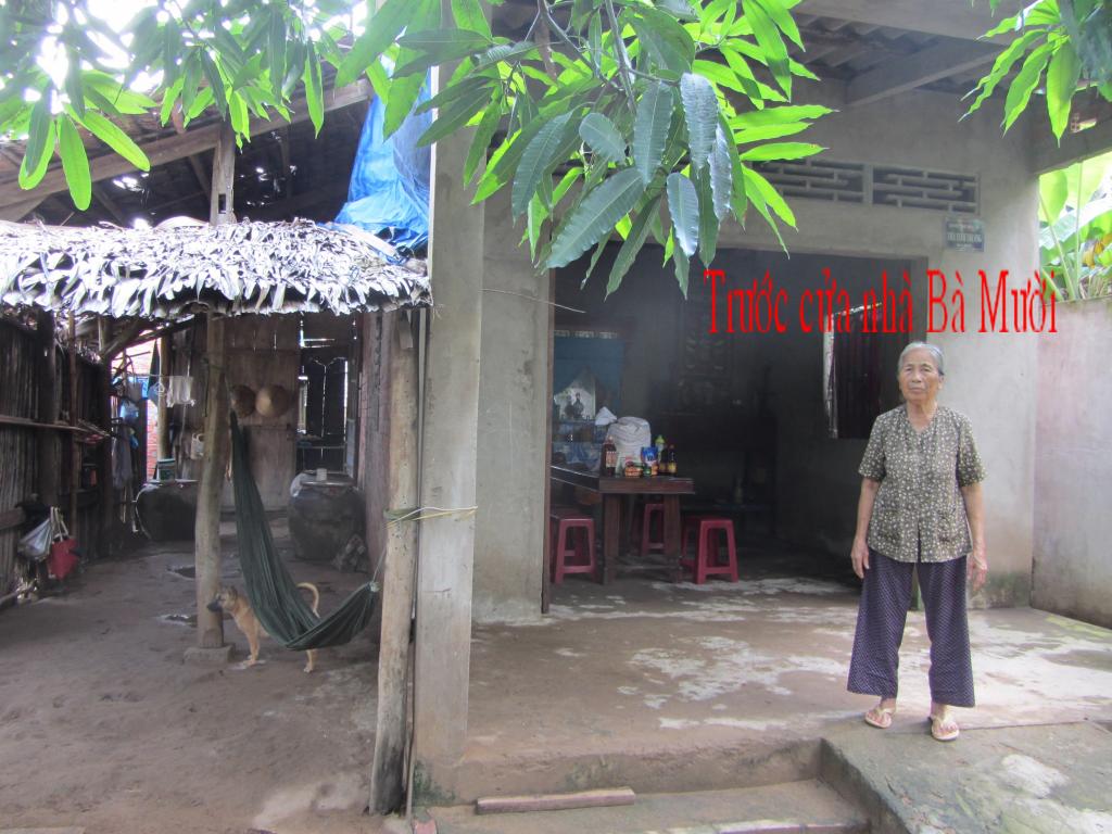 Bà Nguyễn Thị Mười, 80 tuổi. Số nhà 28/2 ấp Thạnh Lợi, xã Bình Thạnh, huyện Thạnh Phú. Bà sống với người con trai làm mướn sống qua ngày nên thiếu thốn nhiều.